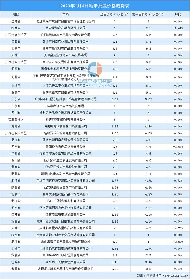 中商情報(bào)網(wǎng)訊:最新數(shù)據(jù)顯示:1月4日,全國(guó)粳米當(dāng)日均價(jià)為5.19元/公斤,秈米當(dāng)日均價(jià)為4.83元/公斤。其中,粳米價(jià)格最高的市場(chǎng)是位于江西省的新余市同盛實(shí)業(yè)集團(tuán)有限責(zé)任公司,當(dāng)日價(jià)格為9.3元/公斤,環(huán)比持平。秈米價(jià)格最高的市場(chǎng)是江蘇宿遷南菜市農(nóng)副產(chǎn)品批發(fā)市場(chǎng)管理有限公司和陜西西安摩爾農(nóng)產(chǎn)品有限責(zé)任公司,當(dāng)日價(jià)格均為7元/公斤。